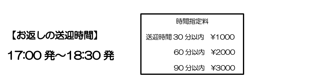 ※お返し時間の指定をする場合には、別途で時間指定料を頂きますのでご了承下さいますようお願い申し上げます。料金については上記の表をご確認ください。